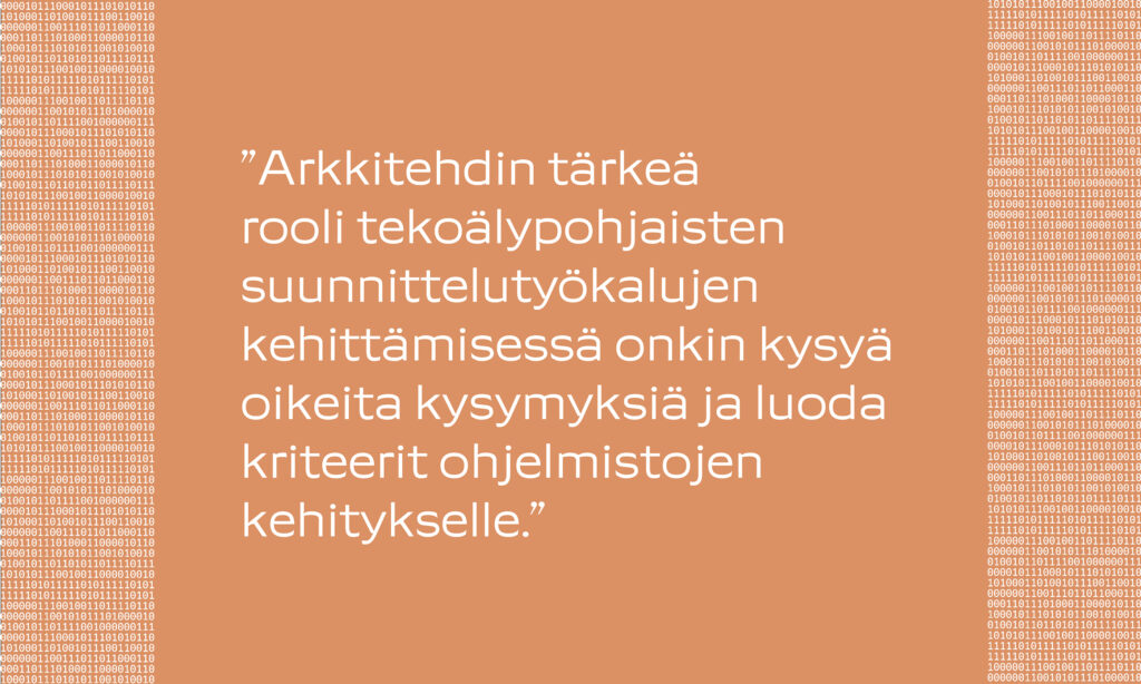 Rutiinityön delegointi tekoälylle vapauttaa suunnittelijan resursseja enemmän ajatustyöhön ja arvopohjaisten näkökulmien, kuten kulttuurihistoriallisten, sosioekonomisten ja ympäristöllisten tekijöiden arviointiin, kirjoittaa Niko Kautonen.