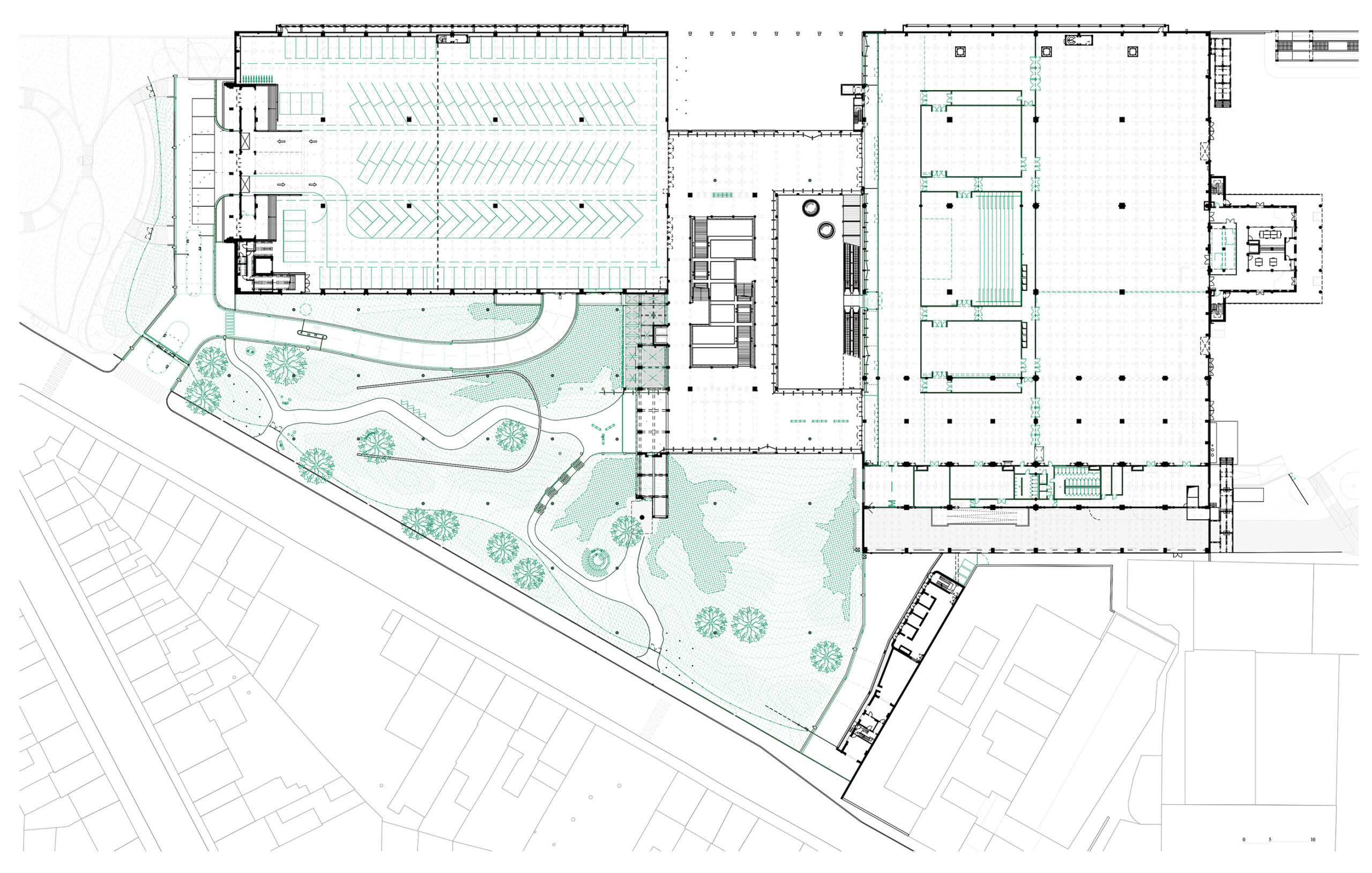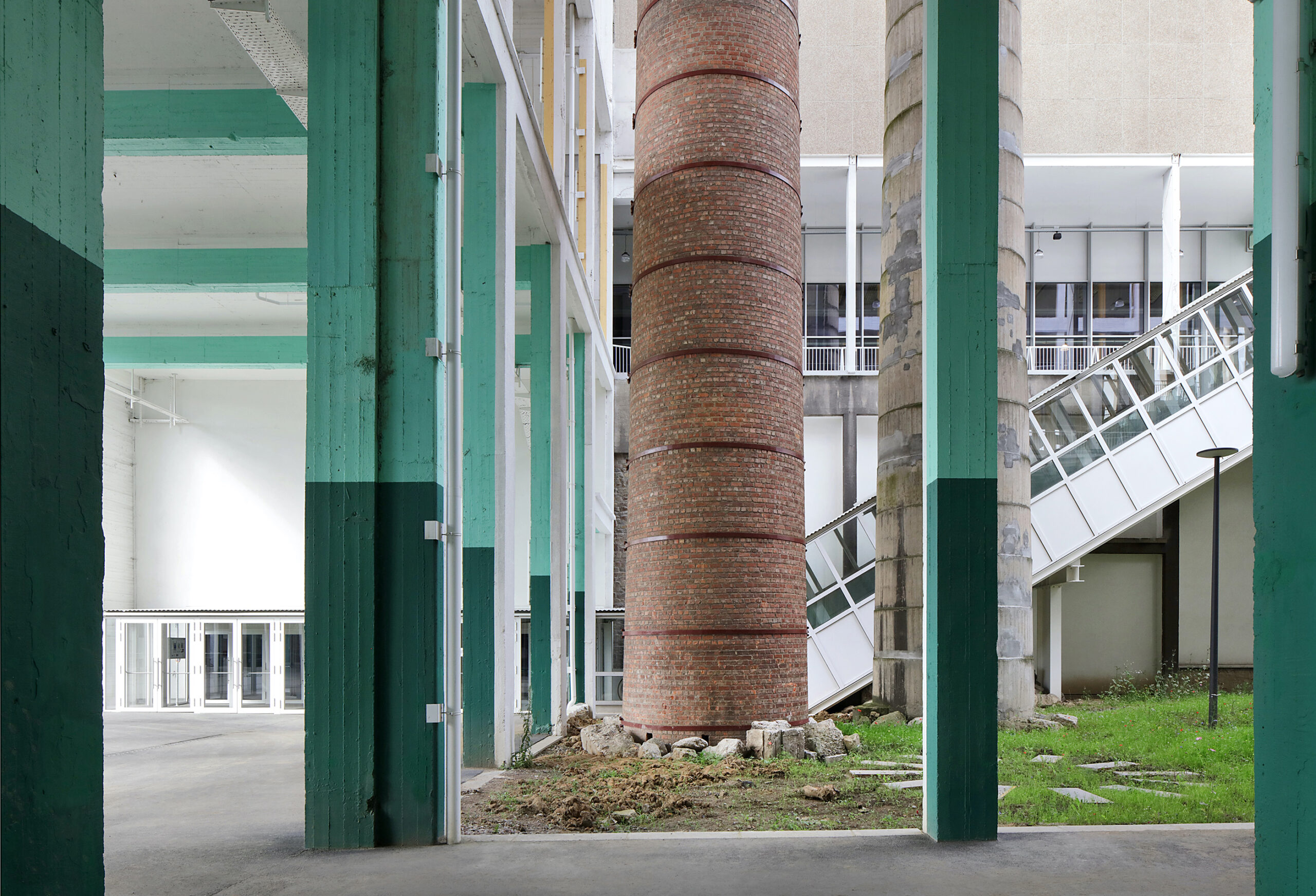 1900-luvun alun koristeellisen tiilirakennuksen purkutyöt oli ehditty jo aloittaa, kun psykiatrisen Caritas-sairaalan uusi johtaja päätti keksiä sille uutta käyttöä yhteisöllisenä tilana. Arkkitehdit säästivät sen, mitä vanhasta rakennuksesta oli jäljellä, ja täydensivät rauniota moderneilla teräs-, lasi- ja harkkorakenteilla häivyttämättä kuitenkaan prosessin jättämiä arpia.
