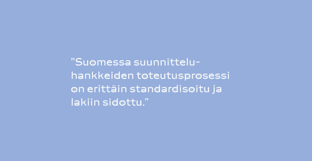 Suomessa suunnitteluhankkeiden toteutusprosessi on erittäin standardisoitu ja lakiin sidottu. Intiassa taas asioita pallotellaan paljon edestakaisin työmaan ja suunnittelupöydän välillä, mikä korvaa standardisoinnin puutteen, vertaa Sudar Oli Gunasekaran.